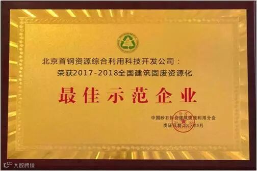 近期,中国砂石协会建筑固废利用分会召开第三届全国建筑固废处理及资源化利用研讨会,通报并授予14家企业为“2017-2018全国建筑固废资源化最佳示范企业”,首钢资源公司名列其中,获得殊荣。