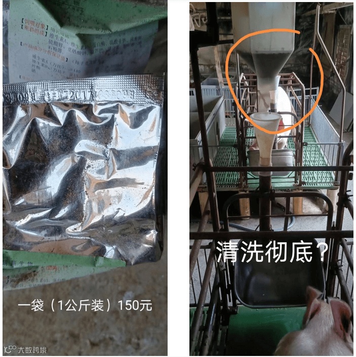 时)时不注意更换、清洗注射器、针头。断奶后补料槽扔出产房外草丛中,下一轮生产缺用又找场长购买。