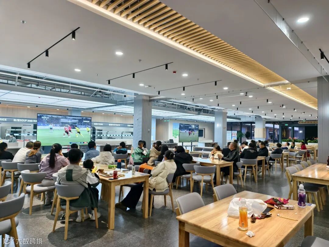 “原本是陪朋友来看球,没想到顺带跟园区里的供应商聊成了合作意向——这活动比我们预期的‘价值多了不止一点’!”来自园区外的茶饮经营负责人吴先生的这番感慨,也成了江海智汇园观赛夜的“意外亮点”。