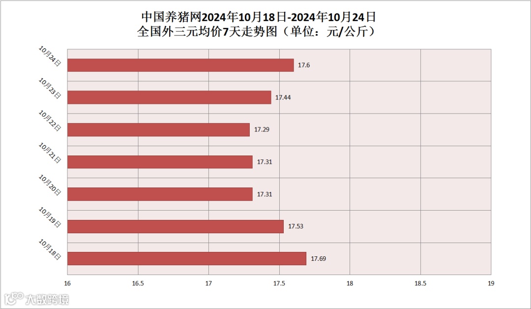 其他生猪品种方面,生猪内三元均价为17.53元/公斤,价格较昨日(17.43元/公斤)上涨了0.13元/公斤;生猪土杂猪均价为17.15元/公斤,价格较昨日(17.08元元/公斤)上涨了0.07元/公斤。