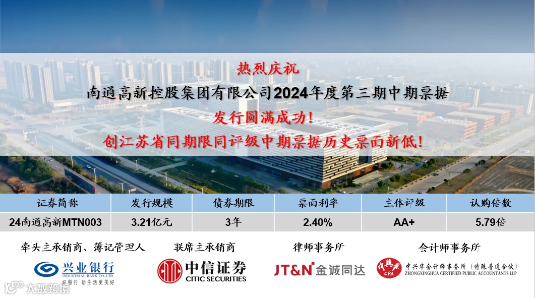 南通高新控股集团2024年度第三期中期票据发行圆满成功