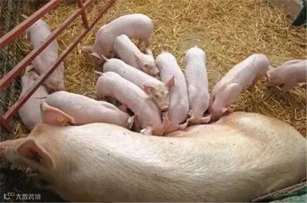 ⑧分娩第一天少量喂食,以后每天增加1/4,第五天达到正常食量。夏季应在早7点、下午4点、晚上11点喂料,白天饲喂牧草,以保证母猪足够营养、肠道通畅。