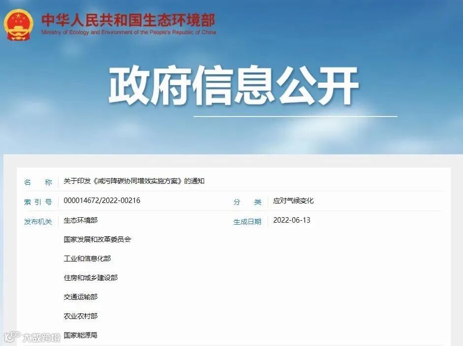 导读:近日,为深入贯彻落实党中央、国务院关于碳达峰碳中和决策部署,落实新发展阶段生态文明建设有关要求,协同推进减污。