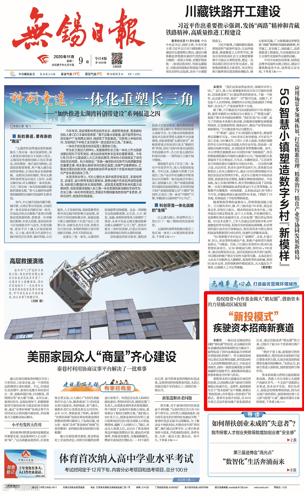 11月9日《无锡日报》头版报道了题为《股权投资+合作基金做大“朋友圈”,借助资本的力量撬动区域发展——“新投模式”疾驶资本招商新赛道》文章,原文如下: