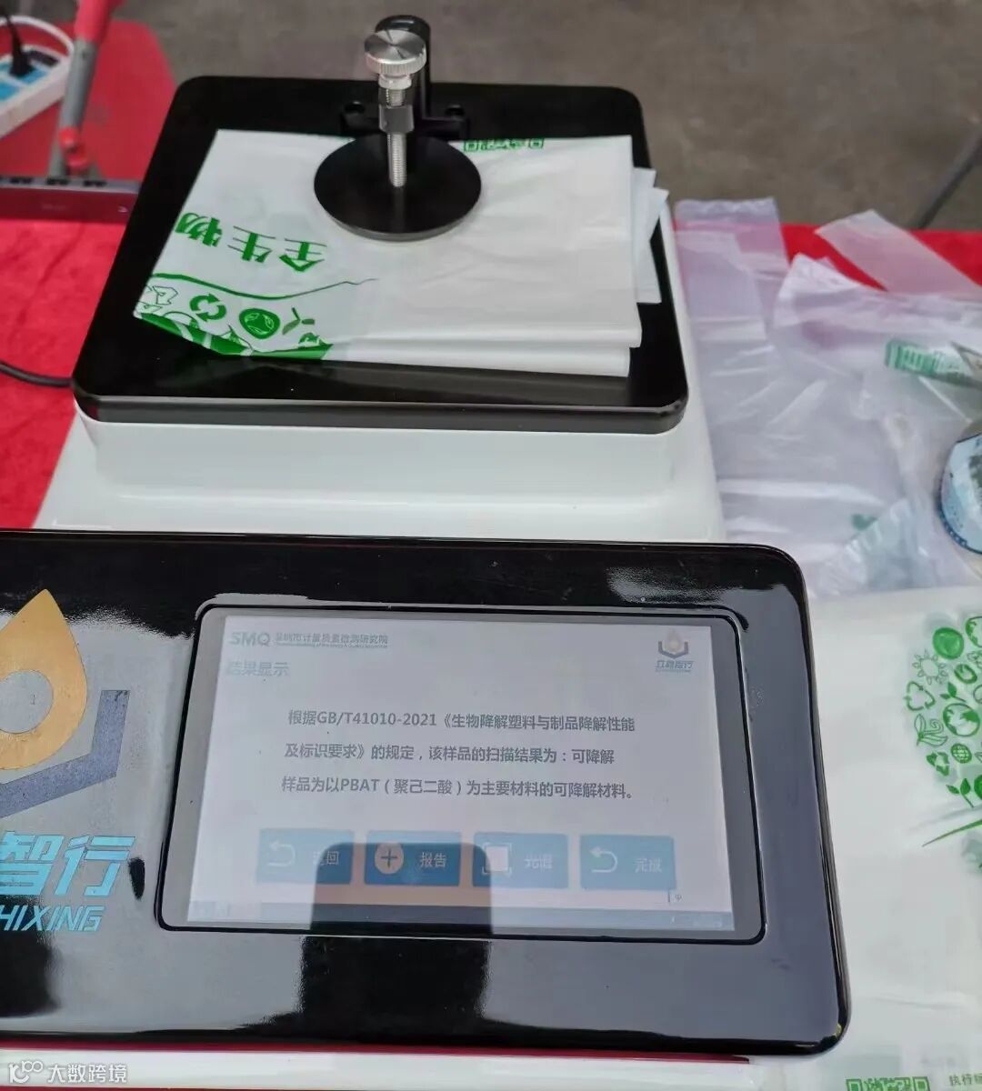 深圳市计量质量检测研究院使用了最新研发的新型快速鉴别仪器对垚能环保科技的可降解塑料袋从含量、克重等方面当场进行了专业检测,检测结果显示,垚能环保科技的产品完全符合国家标准 。