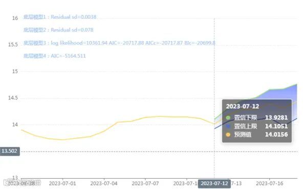 玄田算法是由项目课题组团队原创的非经典逻辑数值聚合理论和不确定性预测方法,构建了基于一致模算子的生猪价格预测模型。该模型采用的聚合函数及一致模相关理论与方法已获得多项国家自然科学基金和省级自然科学资金资助,并获得多项省级自然科学奖奖项。07月12日预测猪价为14.0156,置信区间在13.9281--14.1051之间。07月13日预测猪价为14.1879;07月14日预测猪价为14.2908。