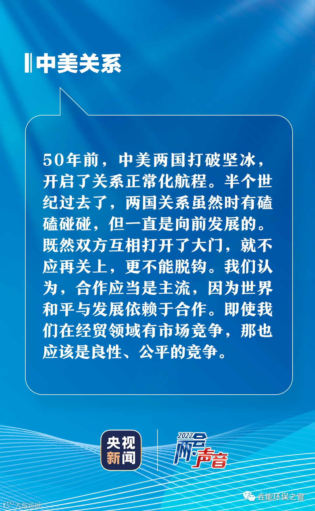 中美两国还是要多对话、多沟通。既然双方互相打开了大门,就不应再关上,更不能脱钩。中方愿同美方一道择宽处行,谋长久利。