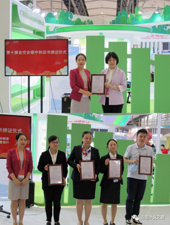 本届金交会作为首届碳中和金交会,广碳所为本次博览会提供全流程碳中和认证和监督服务。展会期间,在广州市地方金融监督管理局领导的见证下,广碳所向广州金交会投资管理有限公司及碳中和展商授予展会碳中和证书。广碳所还与广东省纺织品进出口股份有限公司签订双碳合作协议,双方将充分利用自身优势资源,加强在双碳领域的深度合作。