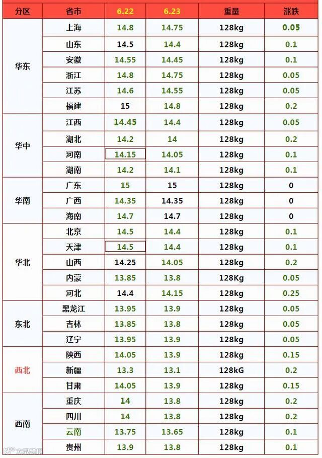 由此可见,6月23日,猪价呈现“破7入6”的表现,其中,东北、西南、西北地区猪价全面跌破7元/斤,而在华北、华中地区,部分低价猪源逐步跌至14元/公斤,在高价地区,华南市场以企稳为主,广东横盘高位,价格维持在15元/公斤!