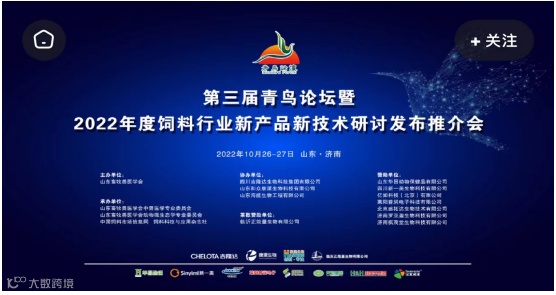 10月26-27日,由山东畜牧兽医学会主办,山东畜牧兽医学会中兽医学专业委员会、动物微生态学委员会、饲料市场信息网和饲料科技与应用杂志社共同承办的第三届青鸟论坛—2022年度饲料行业新产品新技术研讨发布推介会在济南召开。