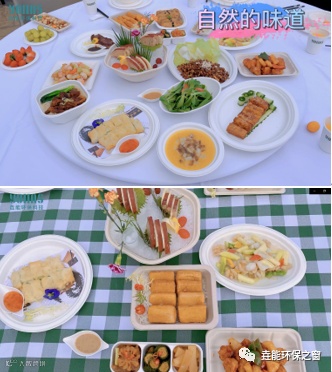 举个例子,比如我们可以用纸盘来做一桌美味的菜肴,简约大气的甘蔗纸浆餐具装上食物非常好看。