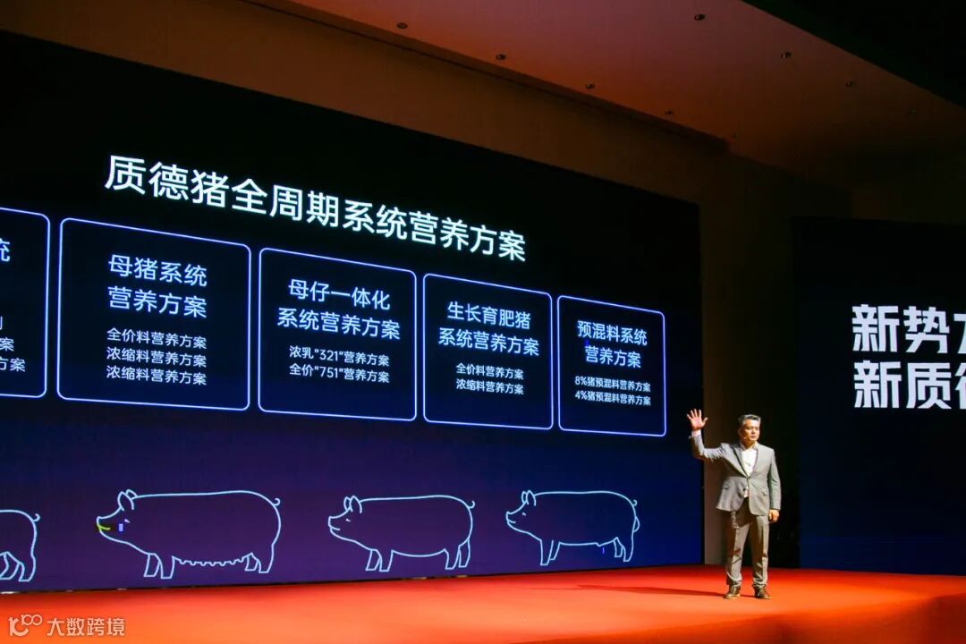 ”质德集团技术总监兼首席营养师陈刚为大家分享了质德在教槽领域最新的研究成果,并发布质德战略产品与解决方案。
