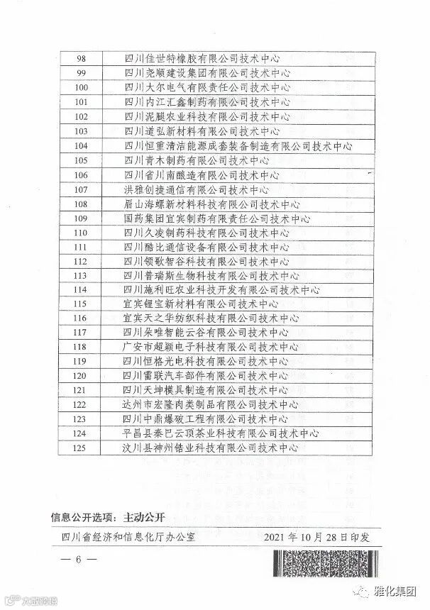 近日,四川省经济和信息化厅等6部门发布2021年四川省企业技术中心认定名单(第一批)的通知(川经信技创〔2021〕216号),根据《四川省企业技术中心认定管理办法》,经审查认定雅化集团中鼎公司技术中心为2021年(第一批)省认定企业技术中心。