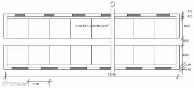 ②保育舍一栋,3个单元,每个单元1.5×5+3=10.5米,栋长31.5米,舍宽6.6米。