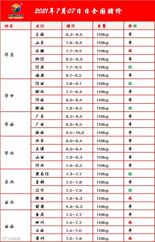 7月7日 全国猪价