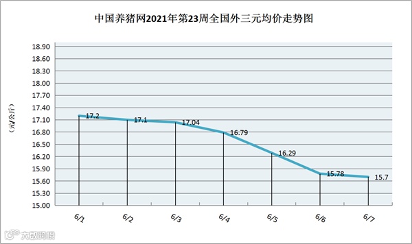 中国养猪网2021年第23周外三元走势图