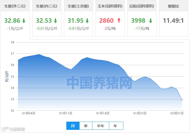 | 地区名称 | 外三元(元/公斤) | 内三元(元/公斤) | 土杂猪(元/公斤) | 玉米(元/吨) | 豆粕(元/吨) |