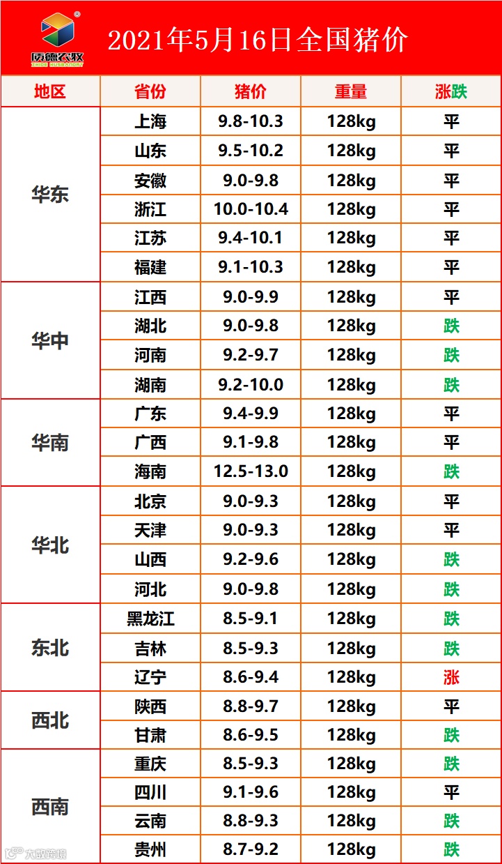 5月16日 全国猪价 山东质德农牧