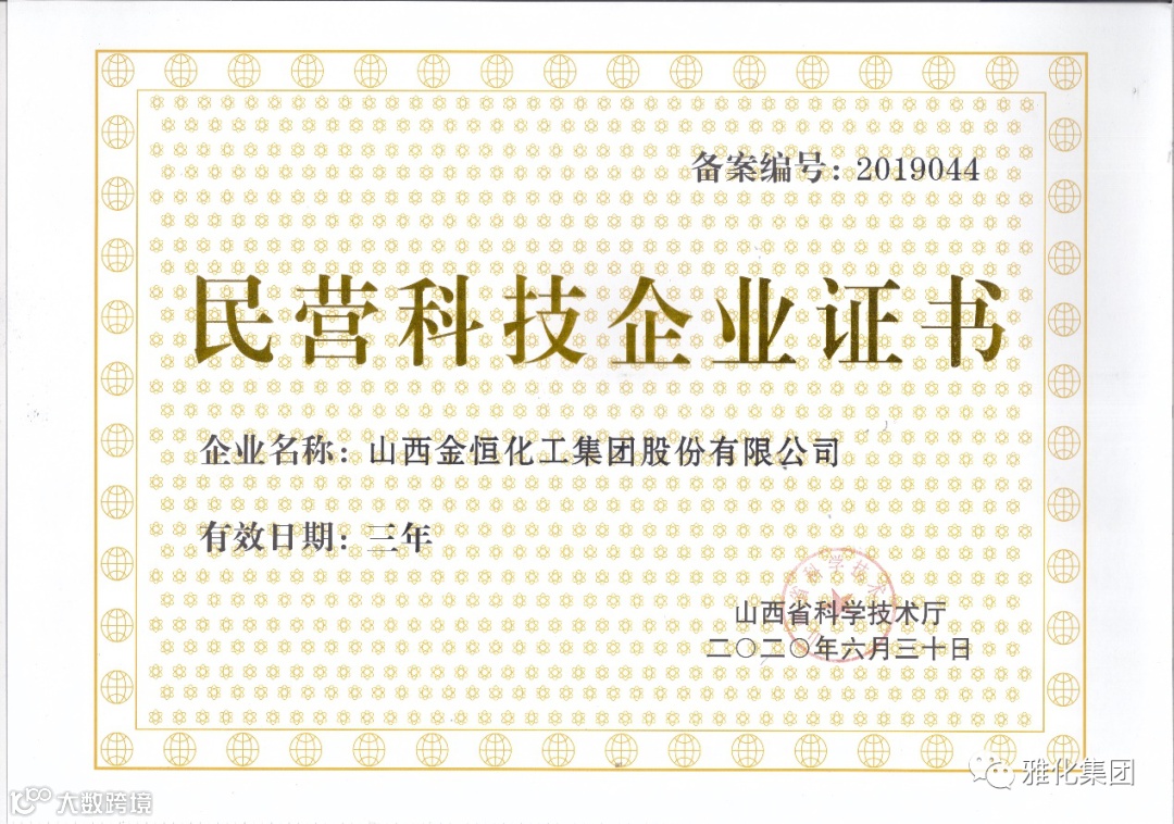 近日,山西省科技厅公布了2020年山西省民营科技企业名单,雅化集团金恒公司成功入围。民营科技企业是为实施科教兴国战略,充分发挥科学技术第一生产力,促进科学技术进步,以科技人员为主体创办的经济实体。
