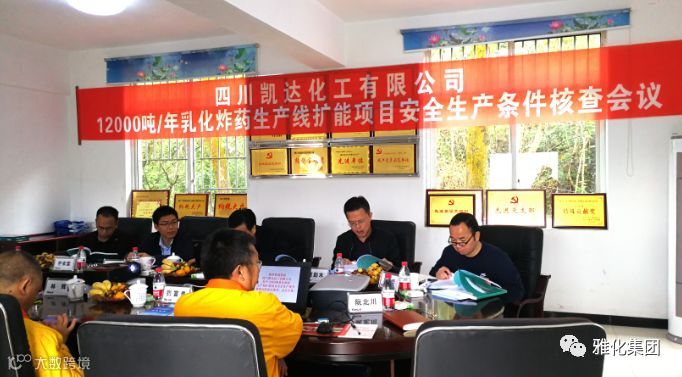 10月27日,四川省委军民融合办专家组到雅化集团凯达公司,对凯达公司泸县分公司12000吨乳化炸药生产线扩能项目安全生产条件进行核查验收,雅化集团总裁助理林辉,公司总经理张富贵、副总经理兼总工程师何先树,泸县分公司经理阮北川等领导陪同。