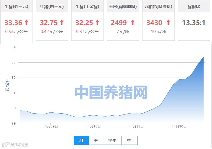 | 地区名称 | 外三元(元/公斤) | 内三元(元/公斤) | 土杂猪(元/公斤) | 玉米(元/吨) | 豆粕(元/吨) |