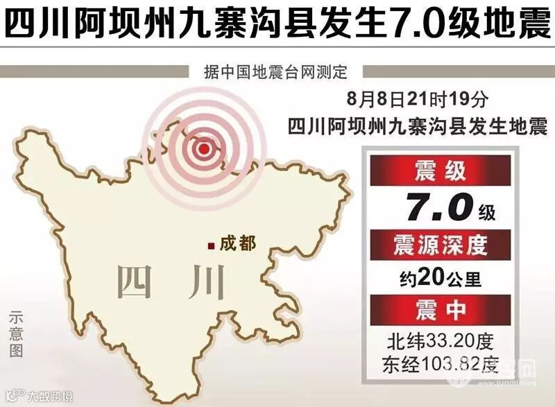 8月8日21时19分,四川省阿坝州九寨沟县发生7.0级地震,地震已造成重大人员伤亡和财产损失。