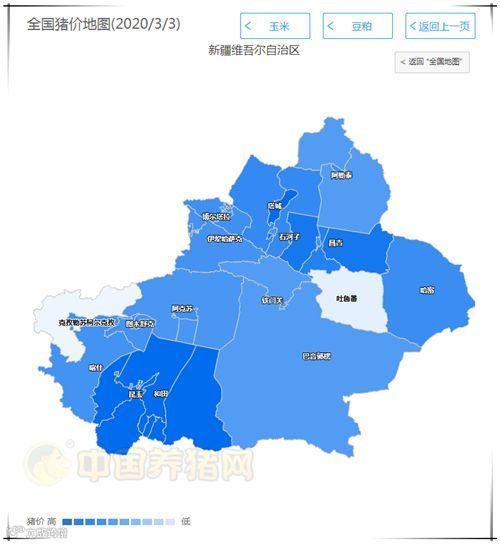 全国最低猪价为新疆,数据统计,今日外三元均价为30.10元/公斤,价格较昨日下跌了0.36元/公斤,较上周下跌了0.74元/公斤。今日内三元均价为28.63元/公斤,价格较昨日下跌了0.05元/公斤,土杂猪均价为28.39元/公斤,价格较昨日下跌了0.22元/公斤。
