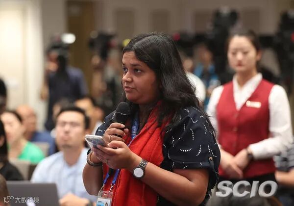 光明日报记者提问(焦非 摄)