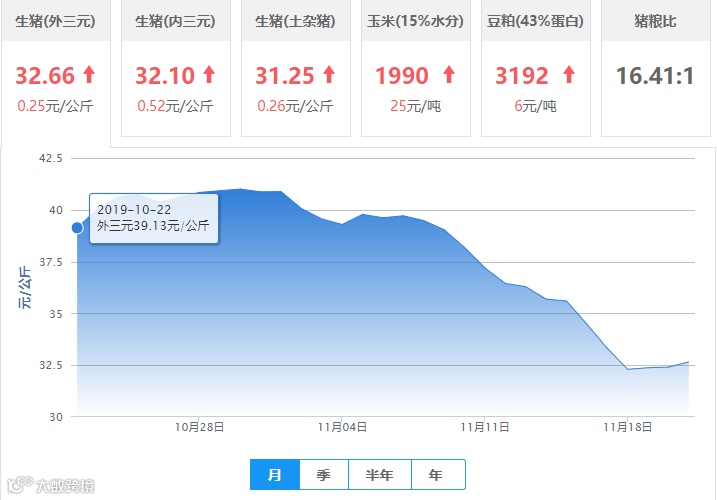 | 地区名称 | 外三元(元/公斤) | 内三元(元/公斤) | 土杂猪(元/公斤) | 玉米(元/吨) | 豆粕(元/吨) |