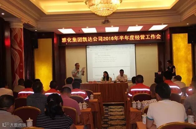 7月12日,雅化集团凯达公司在泸州帝都大酒店顺利召开了半年度经营工作会,泸州区域新成员金盾公司首次出席了凯达主体会议,集团董事杜鹃、董事会秘书翟雄鹰应邀出席会议。公司经理班子成员、凯达本部主管以上管理干部及相关人员,下属公司中干以上管理干部及所属区县分子公司经理共计50余人参加了会议。会议由总经理张富贵主持。