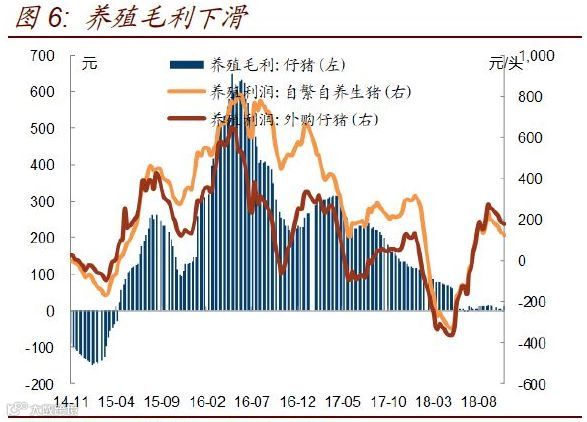 不确定性来自饲料端。生猪养殖成本中,饲料占比70%,玉米、豆粕、小麦等是饲料的主要构成,大豆方面,10月26日中国饲料工业协会批准发布《仔猪、生长育肥猪配合饲料》《蛋鸡、肉鸡配合饲料》两项团体标准,豆粕添加大豆比例调低后,此前一直上涨的豆粕价格下跌,尤其是东北目前进口大豆港口库存较高,大豆供给无忧;但是如果贸易战延续到明年,大豆供需缺口仍然紧张,豆粕上涨的压力较大。玉米方面,一方面东北地区玉米新粮上量偏少,加上近期东北部分地区雨雪天气,企业为保证库存提价收购,而南方销区受发运成本支撑玉米价格较为坚挺。另一方面,新饲料标准下玉米替代大豆导致玉米饲用消费量进一步增加。综合来看,玉米供给偏弱,而需求不弱,预计玉米价格整体维持高位。此外,若极端气候灾害导致玉米大规模减产,将大大增加企业养殖成本,可能影响生猪的养殖利润。
