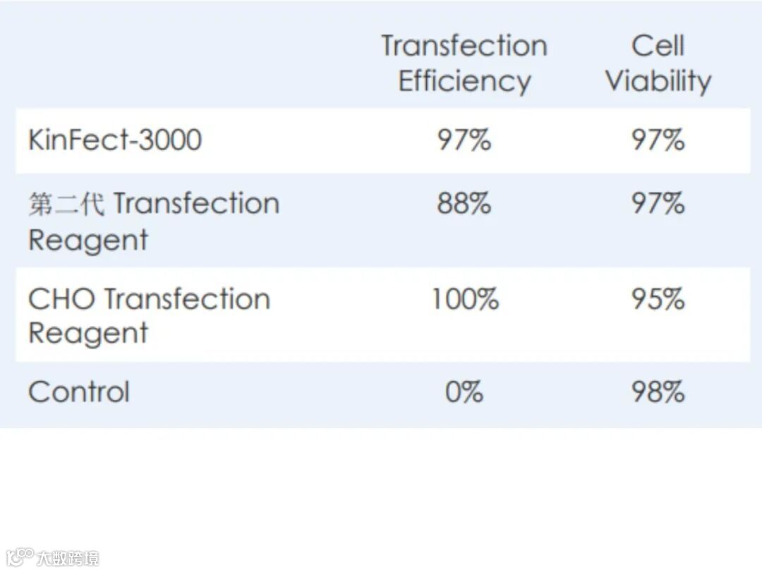 KinFect-3000转染试剂经过与Lipofectamine® 3000 同比测试具有一样出众的转染效果,同样适用于针对血清原代细胞进行DNA和RNA转染。
