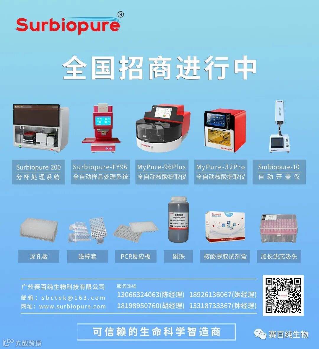 广州赛百纯生物科技有限公司是集研发、生产、销售、客户服务为一体的高科技生物技术公司。目前公司的产品线主要包括全自动核酸提取、质粒DNA产物纯化和胶回收等试剂与相关技术服务,配合全自动核酸提取仪可实现实验室样本处理的自动化操作。