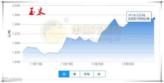 今日全国玉米均价为1986元/吨,与昨日持平,较上周上涨8元/吨。