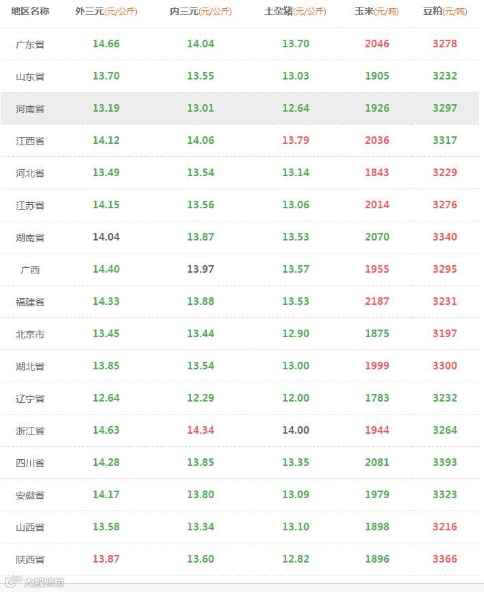 全国价格(2018/8/20) 山东质德农牧