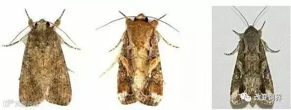 草地贪夜蛾成虫(左为雌蛾,中、右为雄蛾)