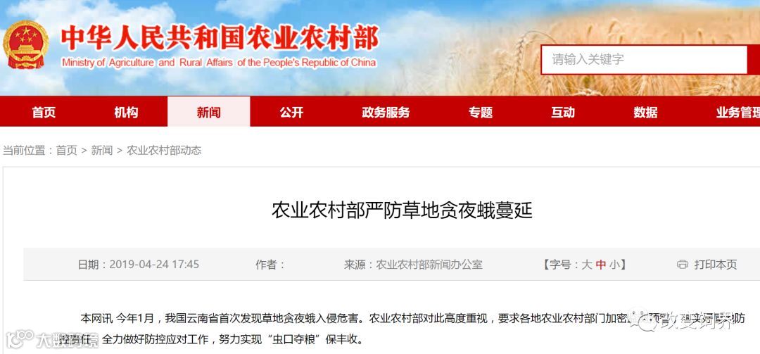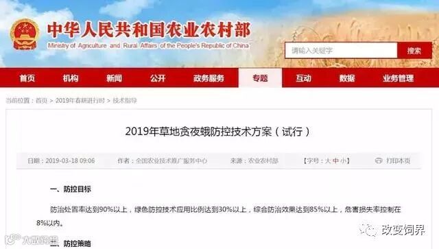 3月18日,我国农业农村部发布2019年草地贪夜蛾防控技术方案,最大限度地阻止草地贪夜蛾在我国的迁飞扩散,减少经济损失。