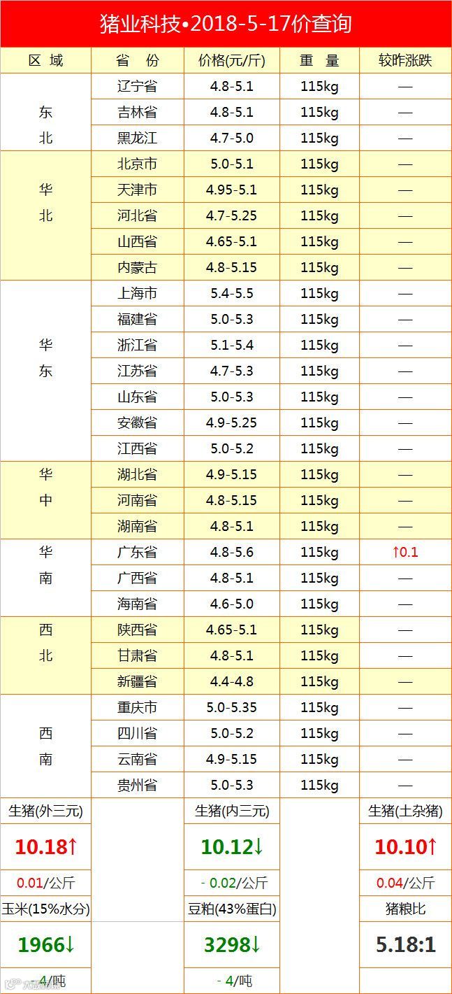 全国猪价•2018-5-17