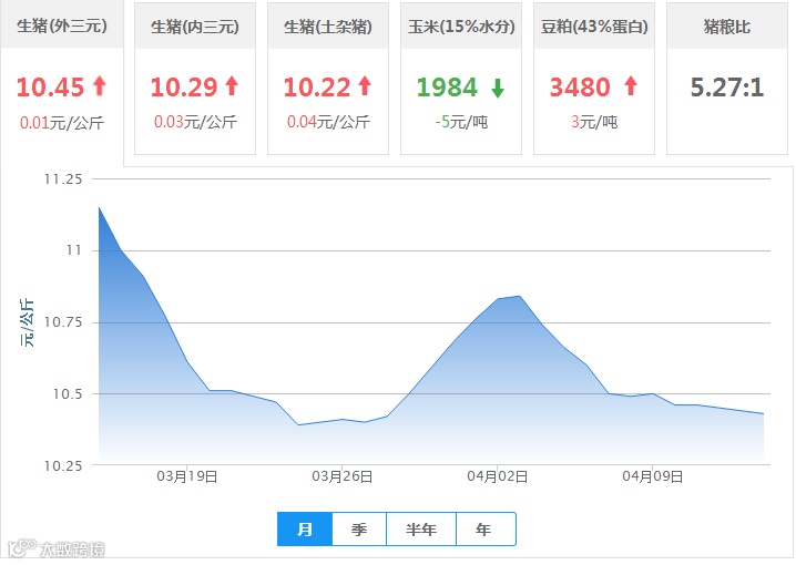 2018年04月14日全国外三元生猪价格行情涨跌表