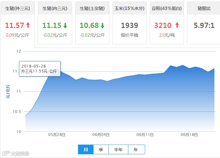 全国内三元生猪价格行情涨跌表