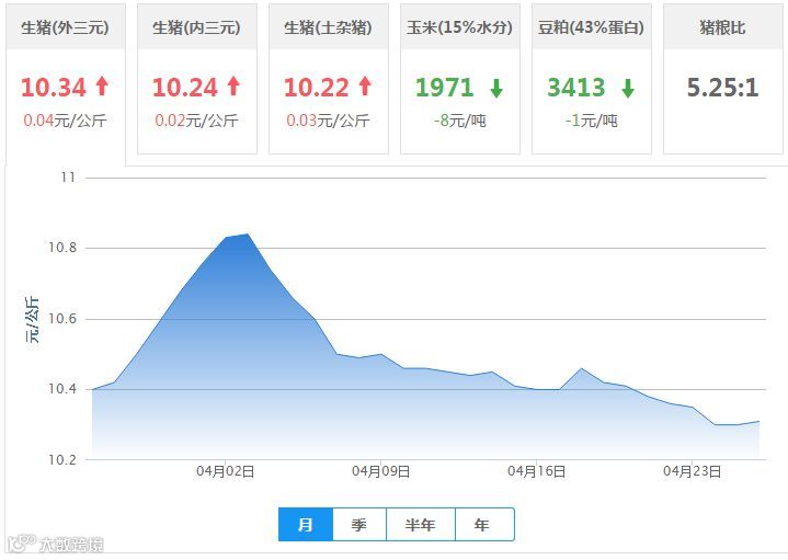 全国内三元生猪价格行情涨跌表