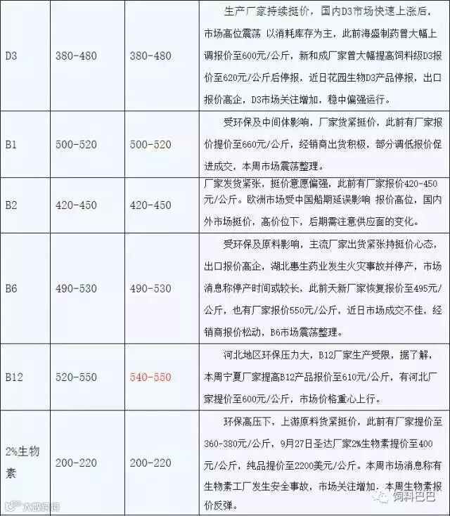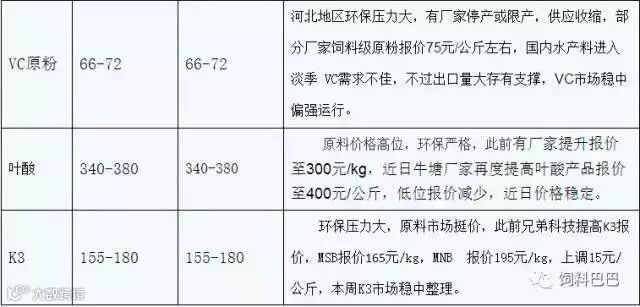 这一次的价格上涨,是由环保问题持续发酵,而且铁路运输极度紧张,除了微量元素、维生素、氨基酸价格的暴涨外,饲料添加剂、抗生保长剂的涨价也是饲料大涨价的幕后推手,其中有些地区受物流影响最大(如四川、贵州、云南等),面临断货,故大原料如豆粕也较正常价格高出300元左右/吨。