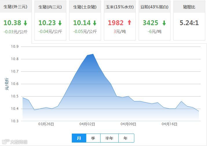 全国内三元生猪价格行情涨跌表
