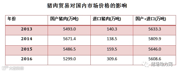 通过数据表,我们能看出,全国每一年市场需求的猪肉年大致为5600万吨,国产猪肉减少后,进口量就增加。这也是一个微妙的平衡。
