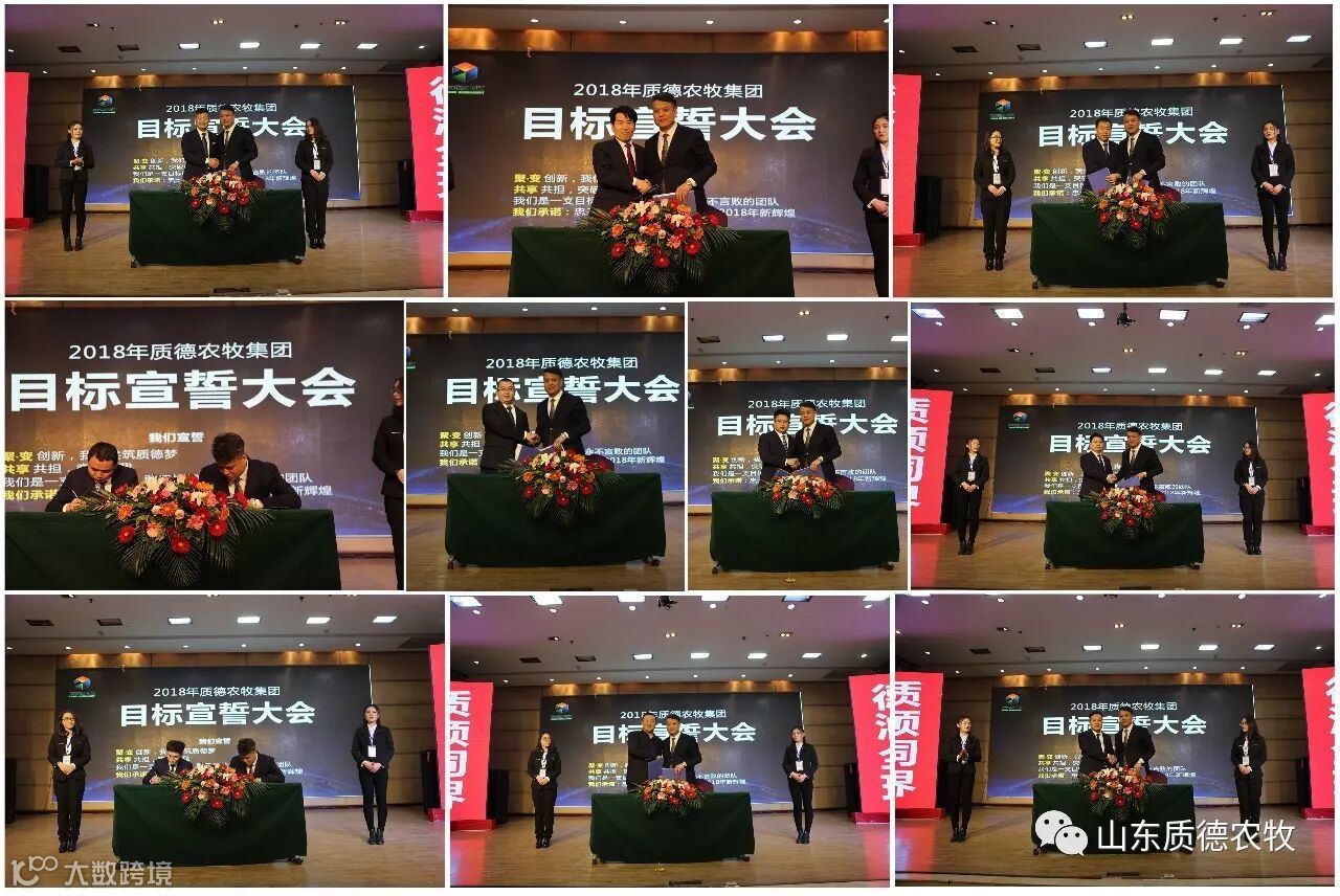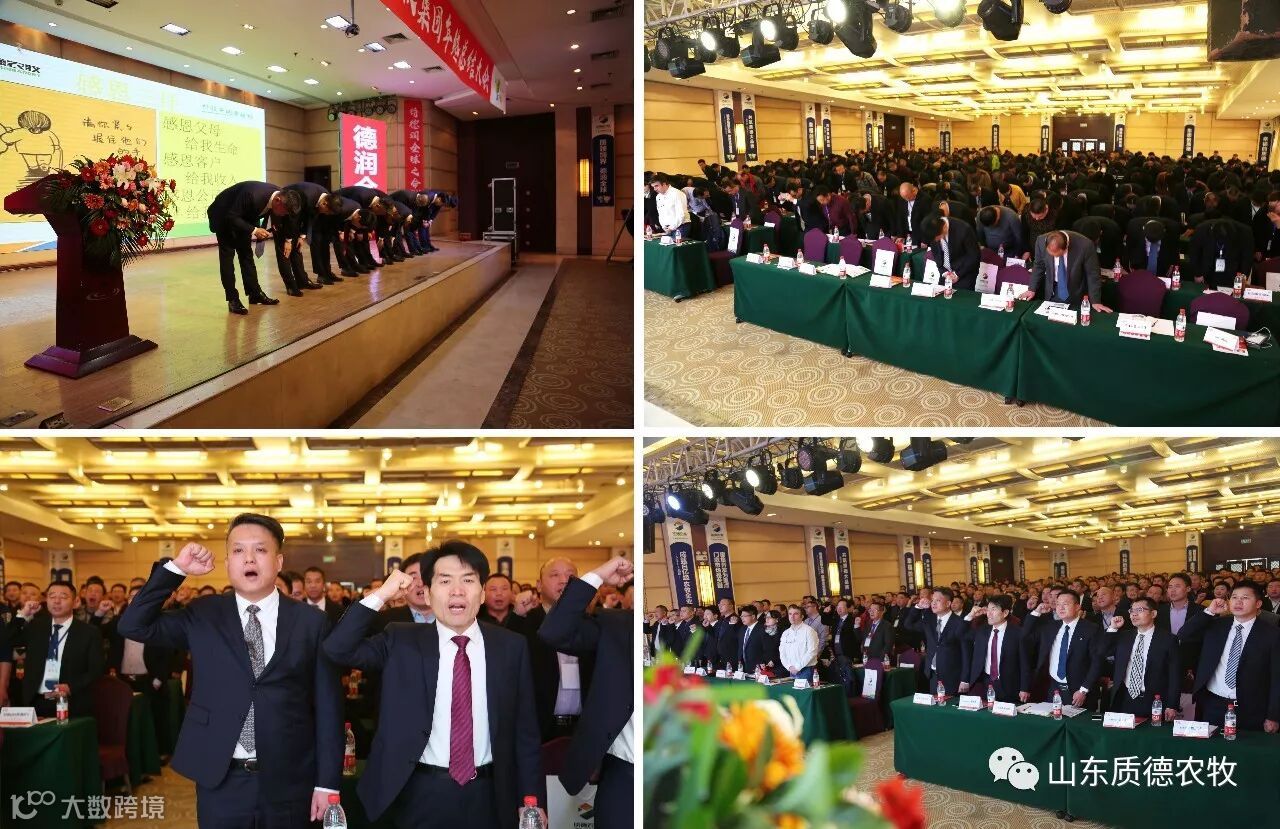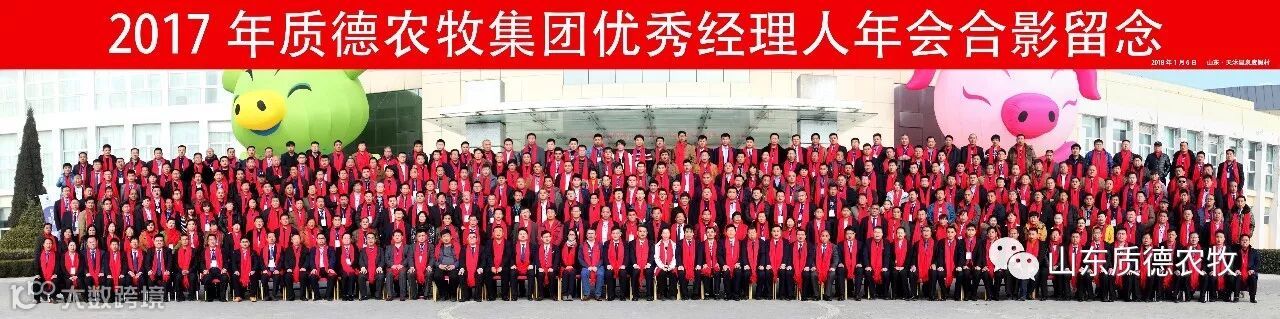 2018年1月6日,质德农牧集团年终总结大会在天沐温泉度假村胜利闭幕,特约嘉宾Mixscience公司Mr Antoine Raul、维摩禅继承人伽南老师、胡玲女士、信睿咨询吴平新、信睿咨询廖洪才,参会人员来自聊城、德州、临沂、沈阳、烟台、黑龙江等公司优秀经理人400余人,会议主题——聚变共享【1以梦为马 莫负韶华2奔跑吧,质德3超越梦想,一起飞】,回顾2017,展望2018。