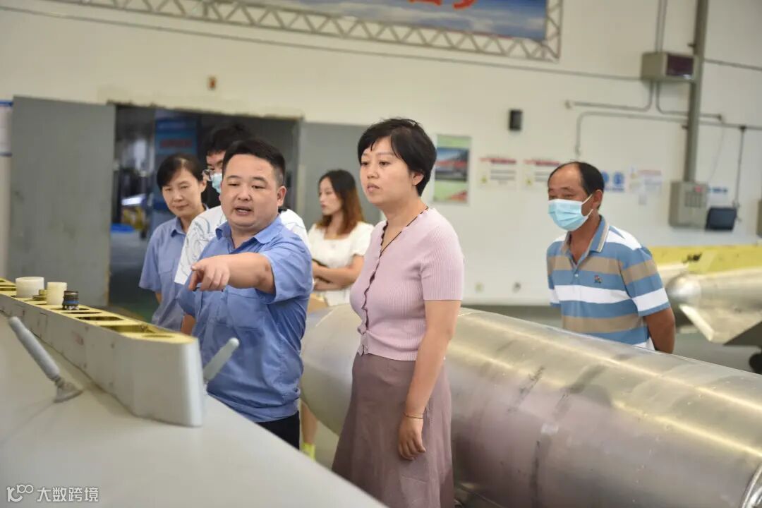 团市委领导与受资助学生家庭参观了江航公司园区、展厅及副油箱厂、供氧装备厂等生产现场。
