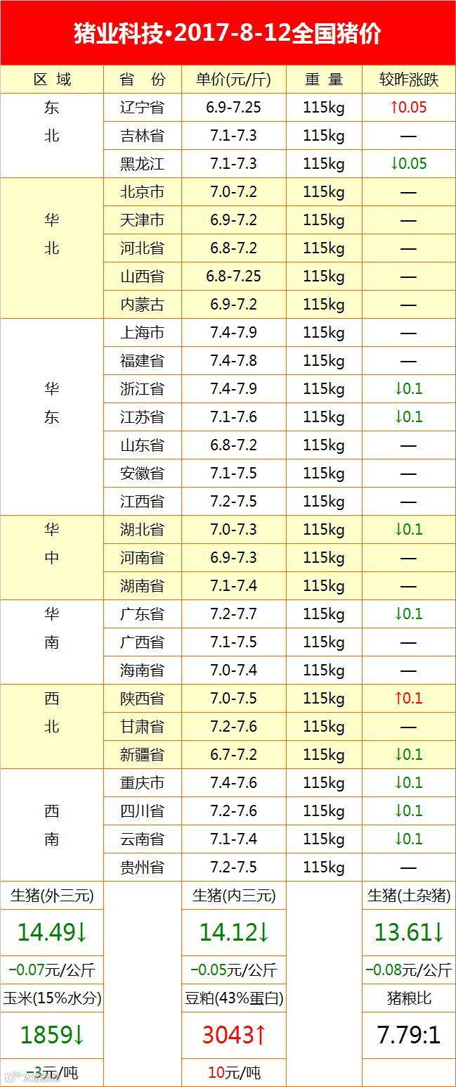 北方:屠宰企业结算价降幅有一定收窄,价格回落大有破七之势,造成养殖户出现抵触,收购难度有一定增加,因此降价难度较大,山东潍坊、半岛地区出现小涨。但需求面整体不佳,价格上涨难继续扩大。