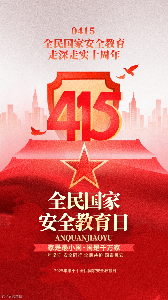 2025年4月15日,我们将迎来第十个全民国家安全教育日。今年主题“全民国家安全教育,走深走实十周年”,既是国家安全教育的里程碑,更是新起点。作为上市公司,值此重要时刻,我们以“线上倡议+主题传播”形式,与社会各界共筑安全屏障。