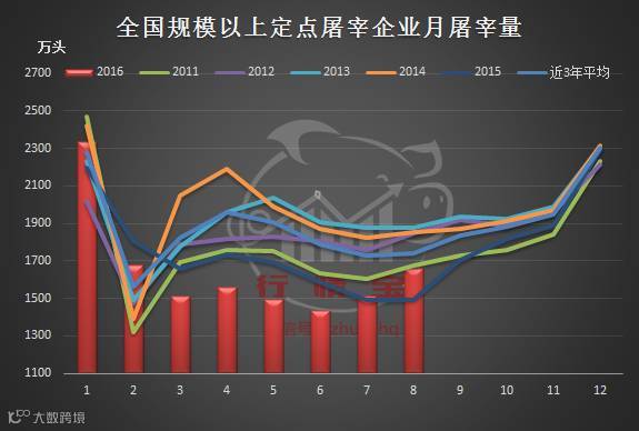8月份全国规模以上定点屠宰企业屠宰量为1660万头,相比上月增加近10%,比去年同期增加10.6%。再次验证了我们之前两个月的观点,集中出栏现象突出,造成猪价易跌难涨。原本预计7月牛猪、超大猪的顺利出栏能够为8月份猪价回升做出贡献,结果大家都留了一手,大猪并未顺利出清,看看8月的出栏量吧。压栏都等到这时候出,哪儿还会有什么冬季仔猪成活率低带来的供应断层。