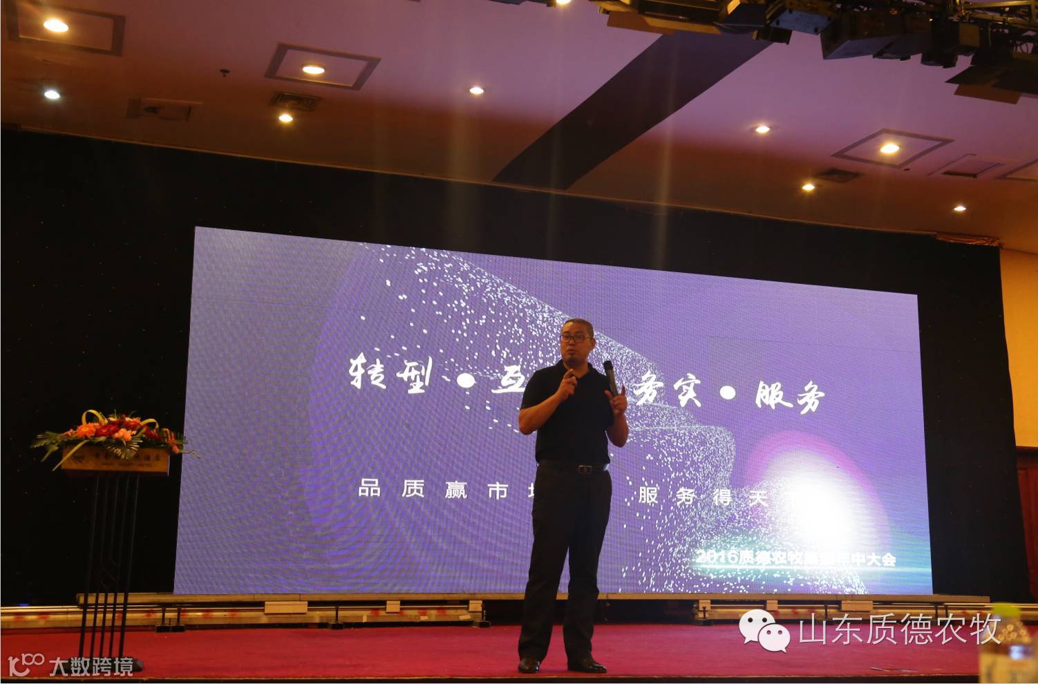 7月19日,质德农牧集团2016年度服务转型大会暨年中会议在烟台市海阳市黄金海岸大酒店顺利举行。集团董事长翟长信先生、副总裁孙建荣先生、营销总监于光春先生、管理中心总监朱全生先生、首席资深顾问卢干老师、农牧行业顶级运营导师王中老师及各分公司总经理翟长红、苗子甫、韩书礼、郝洪军 ,技术服务专家等出席了此次会议,参会人员300余人。大会围绕“转型 互联 务实 服务—品质赢市场,服务得天下”为主题,深入分析发展形势与发展机遇,安排和部署下半年的各项工作任务,动员全体干部员工凝心聚力、务求实效,全力推动集团升级发展。